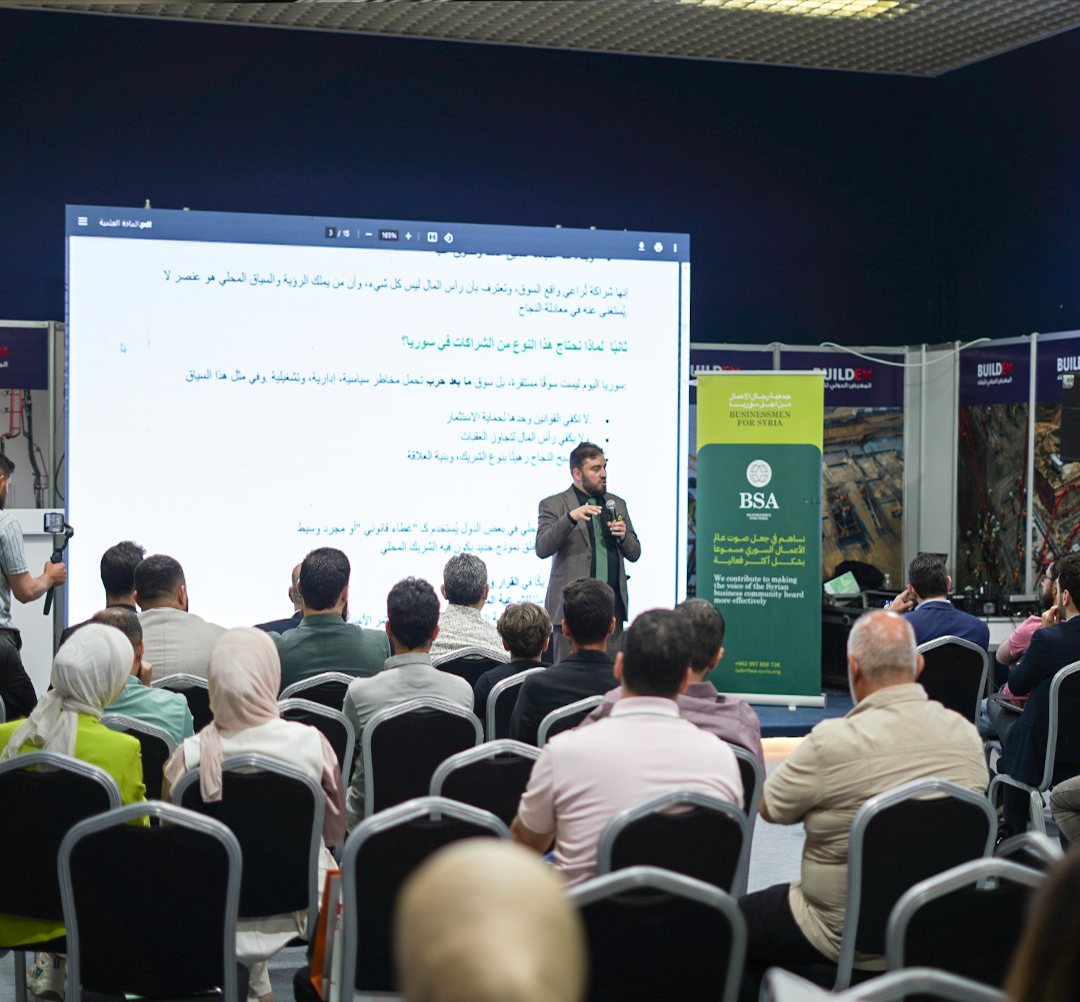 Additionally, the association organized a dialogue session during the exhibition titled "Towards an Integrated Economic Environment", attended by over 50 participants from Syria and abroad. The session provided a platform to present new investment visions and showcase BSA’s future projects.